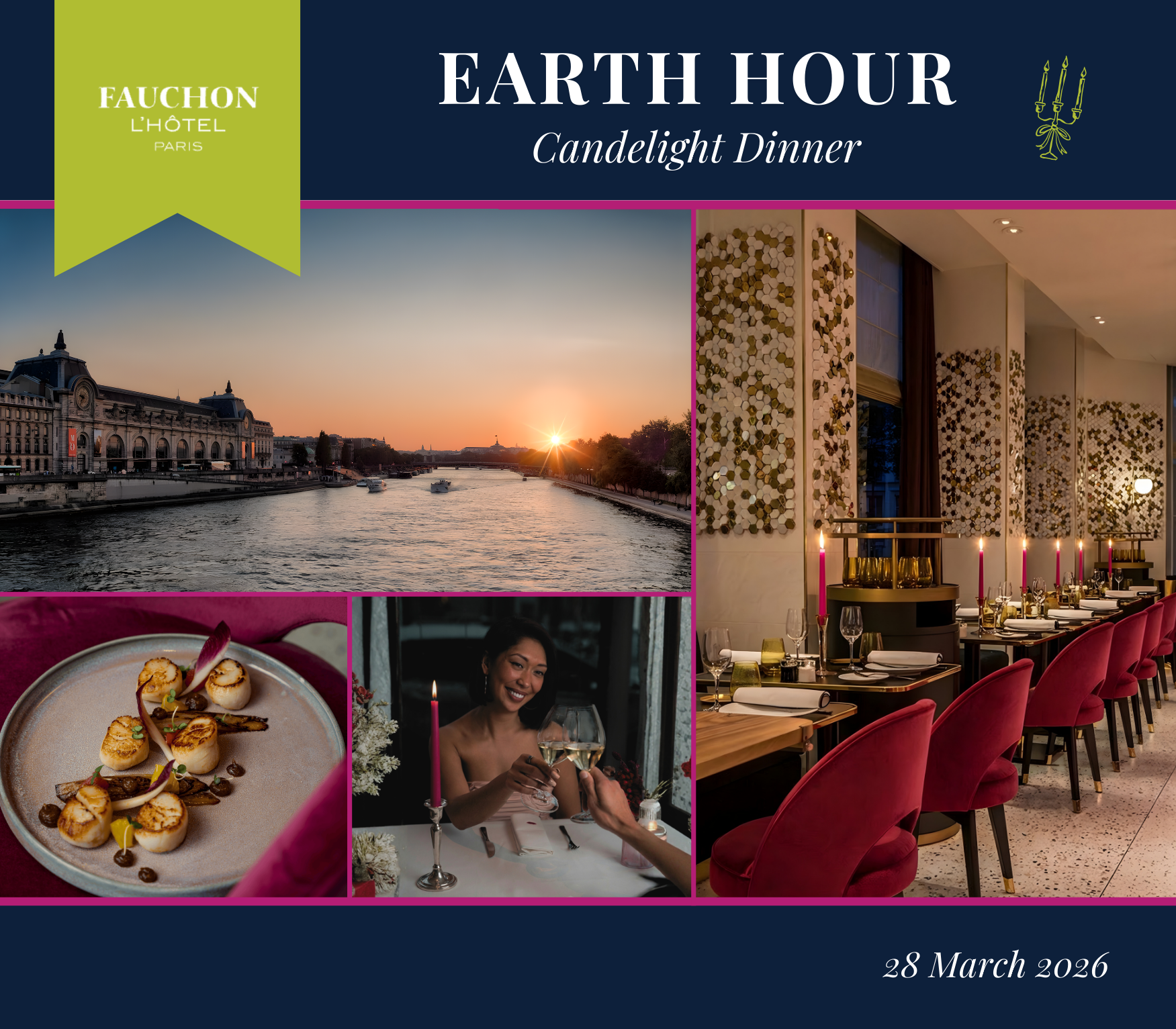 On Saturday 28 March 2026, Fauchon L’Hôtel Paris will celebrate Earth Hour with a refined Candlelight Dinner at Le Grand Café Fauchon.